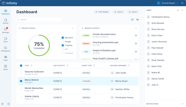 Considering the dashboard may contain a large amount of data and various types of data, the UI design should possess these criteria: